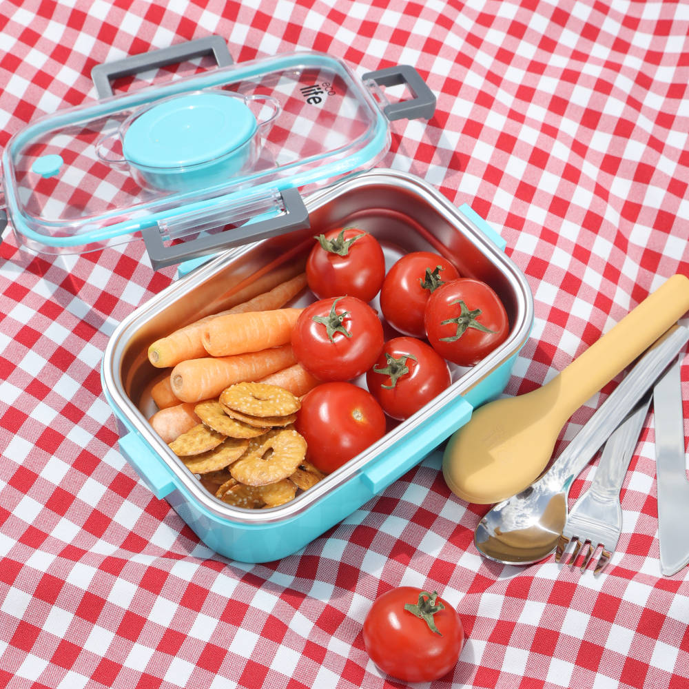 Το θαλασσί ορθογώνιο φαγητοδοχείο 850ml από την Ecolife,  είναι ιδανικό για τη μεταφορά γευμάτων στο σχολείο, στο γραφείο ή στη βόλτα. Ο πρακτικός σχεδιασμός του επιτρέπει την ασφαλή αποθήκευση και μεταφορά τροφίμων.
