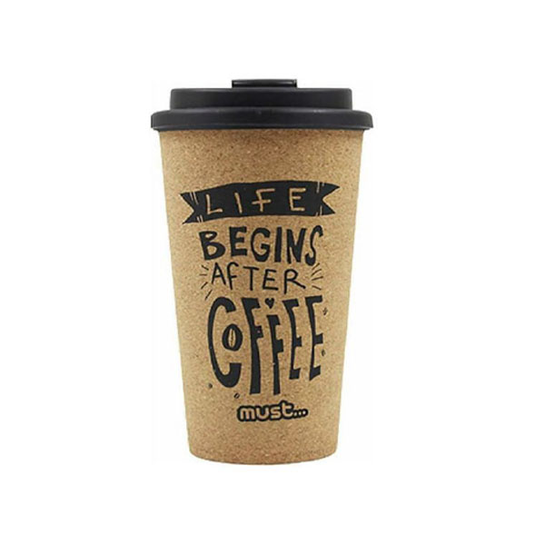 Κούπα για ζεστά ροφήματα τα οποία δεν προλαβαίνετε να πιείτε στο σπίτι σας, με εξωτερικό περίβλημα φελλού για να κρατάνε καυτό το ρόφημα και όχι τα χέρια σας!