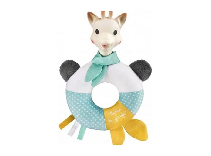Ο τέλειος συνδυασμός μεταξύ του καουτσούκ και του υφάσματος βρίσκεται σε αυτή την χαρούμενη κουδουνίστρα της Σόφις της καμηλοπάρδαλης που θα ηρεμήσει και διασκεδάσει ταυτόχρονα το μωράκι σας!