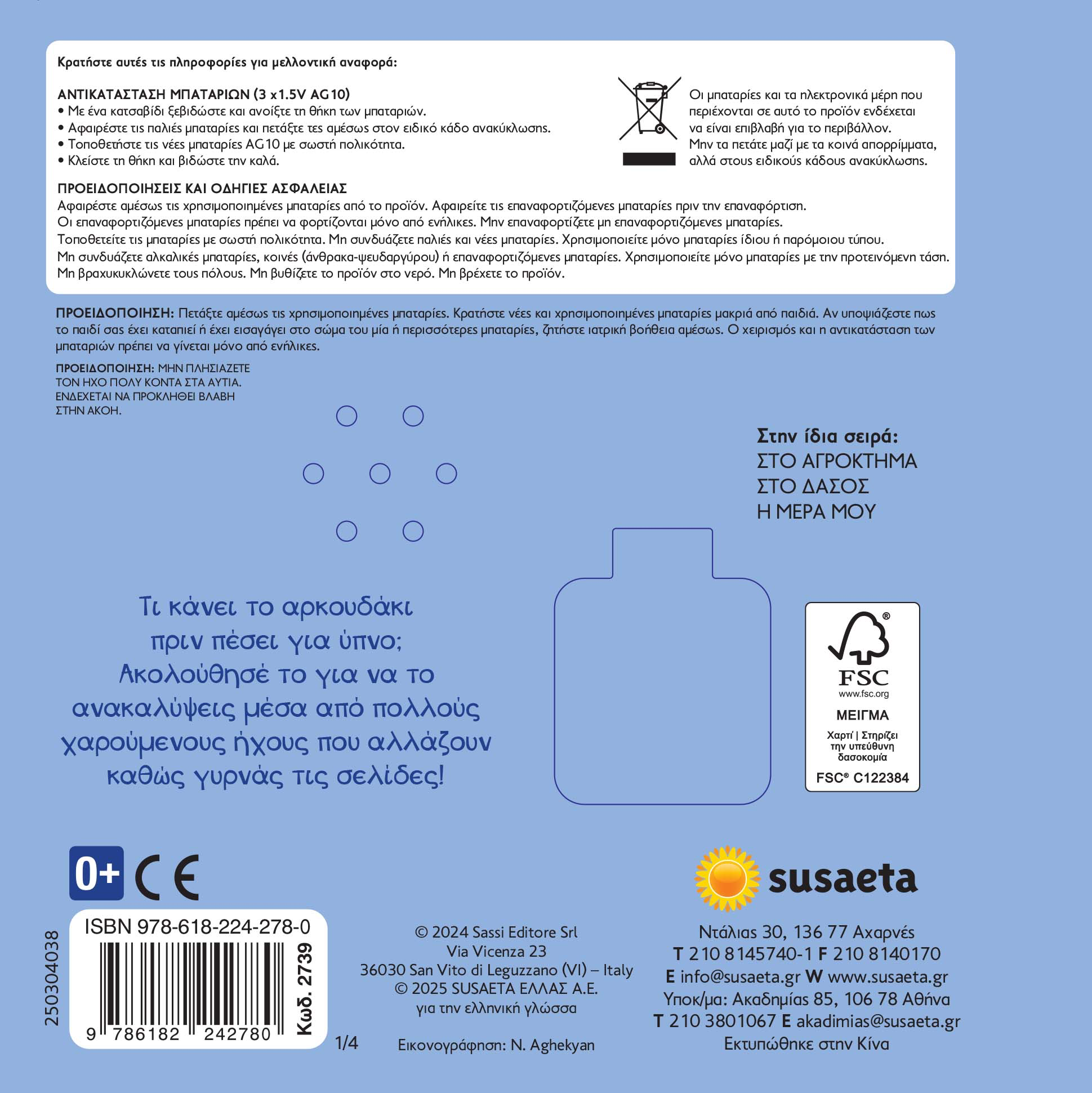 Το βιβλίο «Χαρούμενες Ιστορίες με Ήχους 1 – Όνειρα Γλυκά» από τις εκδόσεις Susaeta προσφέρει μια μοναδική εμπειρία ανάγνωσης για τα μικρά παιδιά. Καθώς γυρίζουν τις σελίδες, μαθαίνουμε την αγαπημένη ρουτίνα που έχει το αρκουδάκι πριν πέσει για ύπνο.