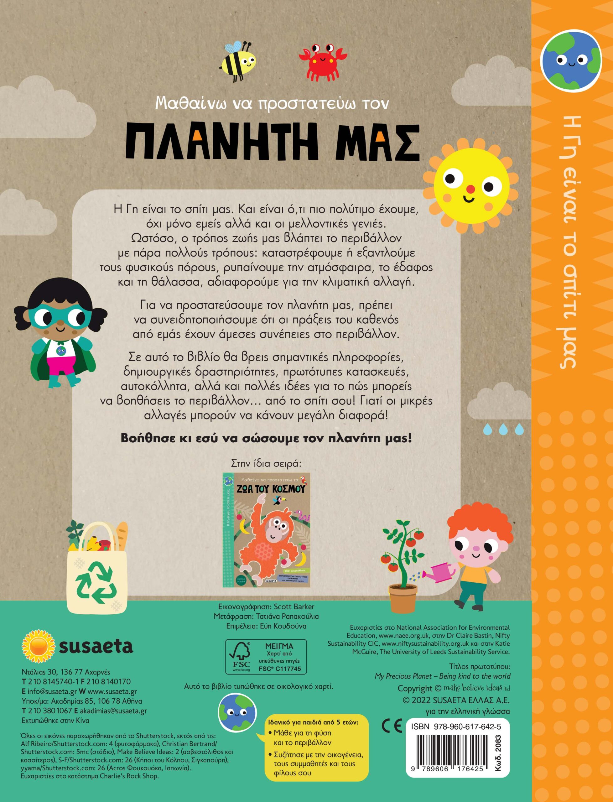 Το βιβλίο «Μαθαίνω να Προστατεύω τον Πλανήτη μας» από τις εκδόσεις Susaeta, αναφέρεται σε βασικά θέματα όπως η ανακύκλωση, η εξοικονόμηση ενέργειας, η προστασία των ζώων και η μείωση της ρύπανσης, δίνοντας στα παιδιά την ευκαιρία να κατανοήσουν με απλό και κατανοητό τρόπο τι σημαίνει σεβασμός προς το περιβάλλον.