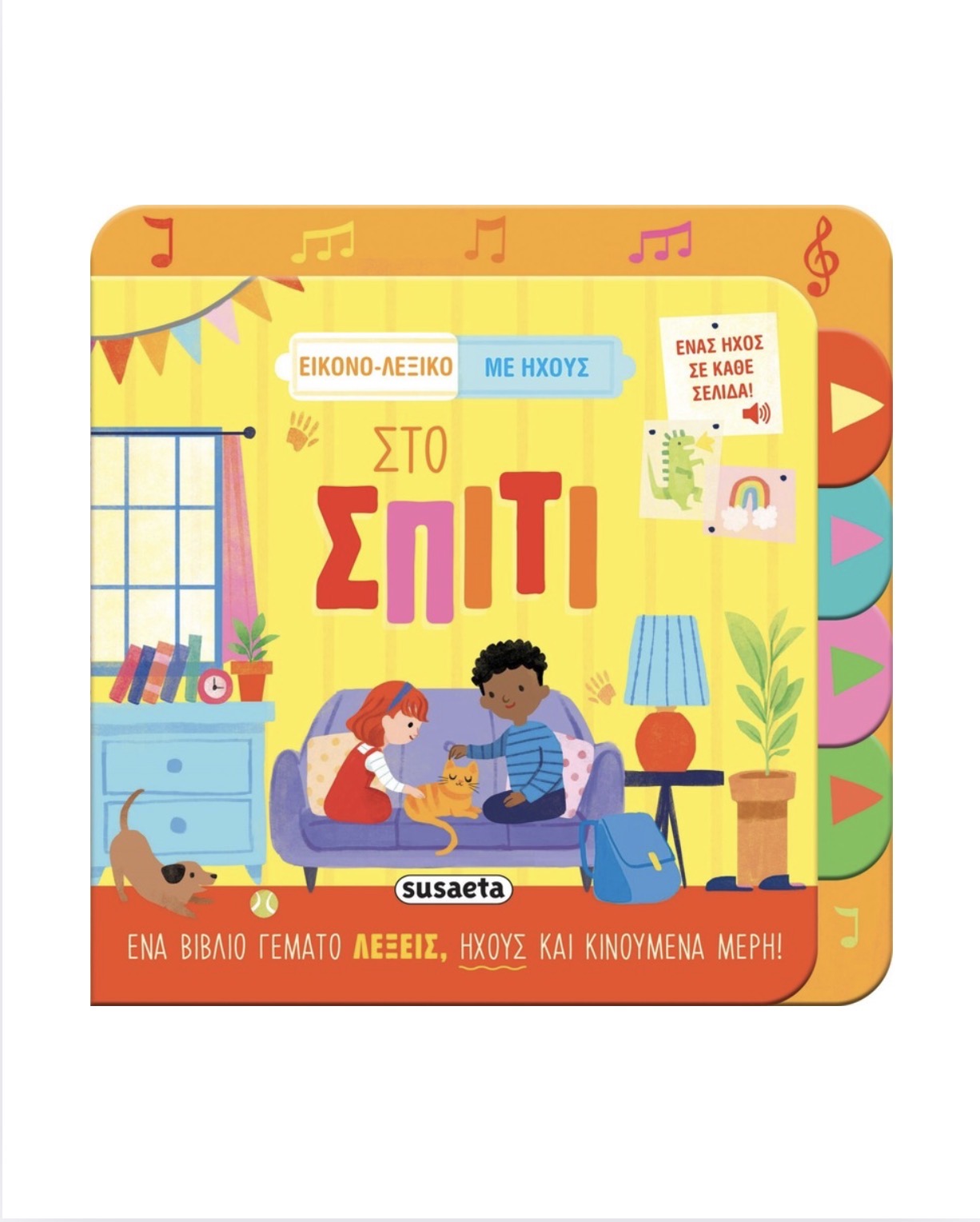 Διαδραστικό ηχοβιβλίο «Στο Σπίτι» από Susaeta. Εκμάθηση λέξεων, εικόνες και ήχοι που ζωντανεύουν το σπίτι.Τράβηξε τους χρωματιστούς  σελιδοδείκτες σε κάθε σελίδα για να ακούσεις έναν ήχο-έκπληξη! Ιδανικό για παιδιά από 3 ετών.