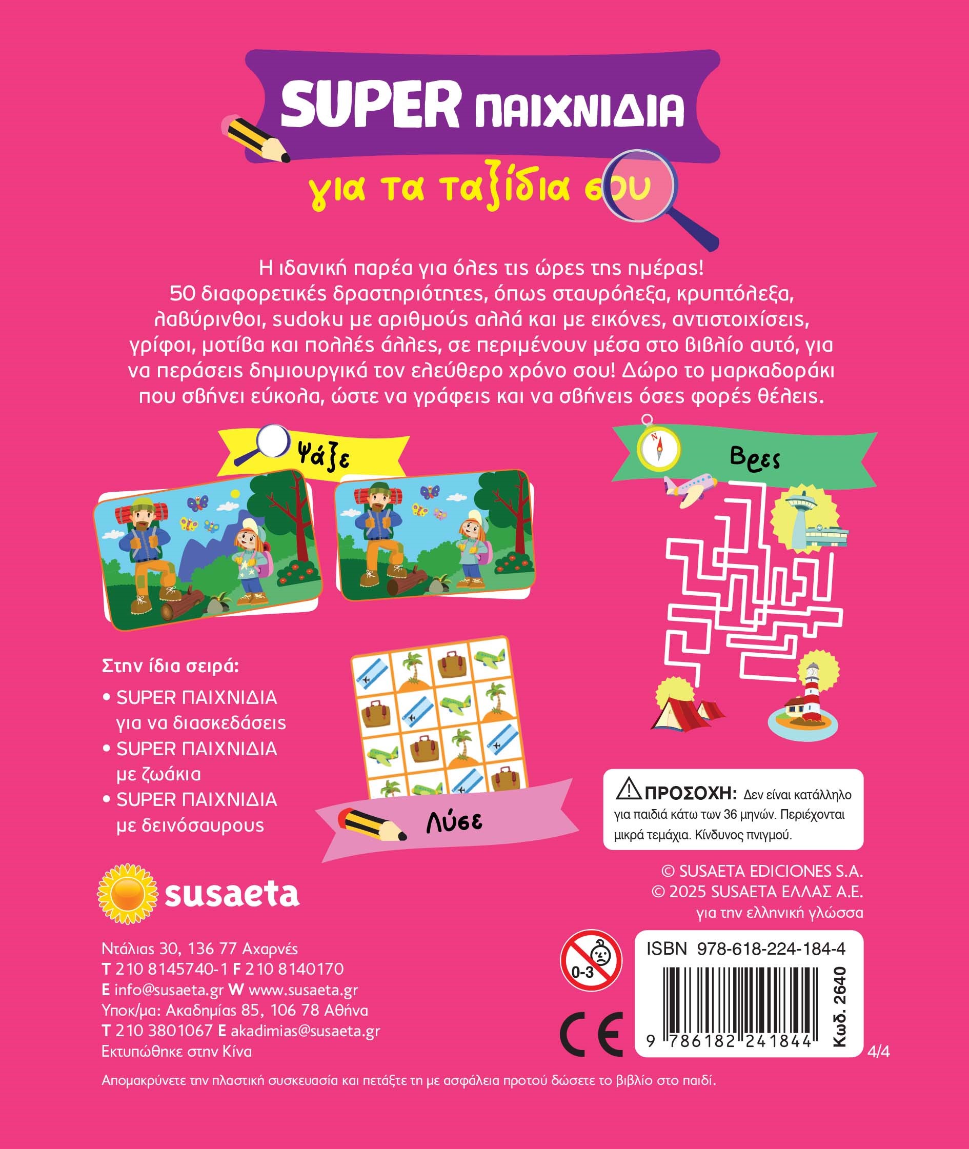 Το «Super Παιχνίδια – Για τα ταξίδια σου» είναι το ιδανικό βιβλίο δραστηριοτήτων για ταξίδια, με 50 διαφορετικές δραστηριότητες για δημιουργική απασχόληση όπου κι αν βρίσκεστε.