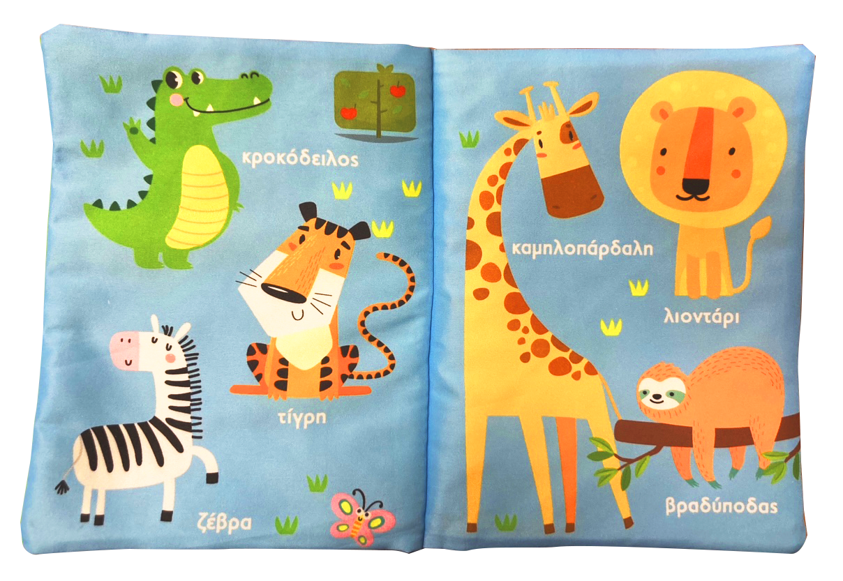 • Απαλό πάνι με πολύχρωμες εικόνες αγαπημένων ζώων, ιδανικό για βρεφική ηλικία.